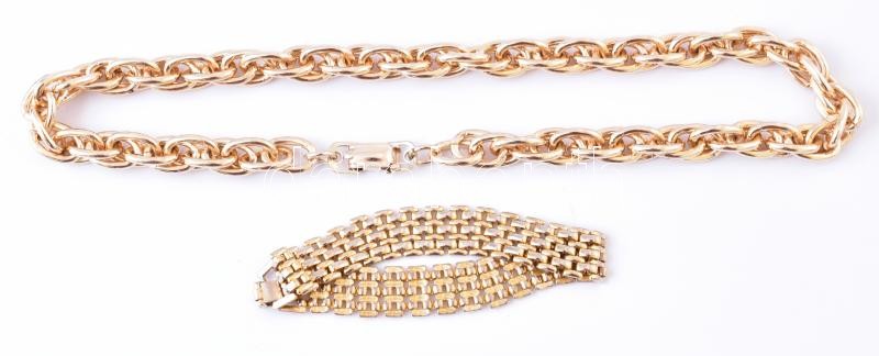Beschreibung: Vastag arany színű bizsu nyaklánc és karkötő, h: 43 cm és 19 cm