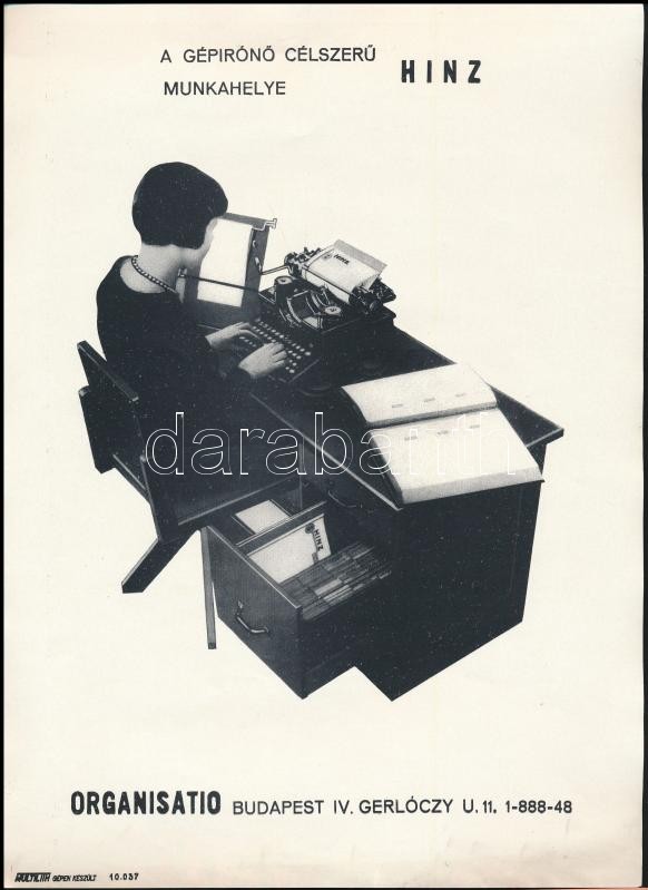 cca 1928 A gépírónő célszerű munkahelye, Hinz Organisatio, fényképes r... https://www.darabanth.com/de/392-Fernauktion/392.0/Kunst-Dokumente-andere-Sammelgebiete/Werbungen~500022/cca-1928-A-gepirono-celszeru-munkahelye-Hinz-Organisatio-fenykepes-reklamlap-jo-allapo~II2375263