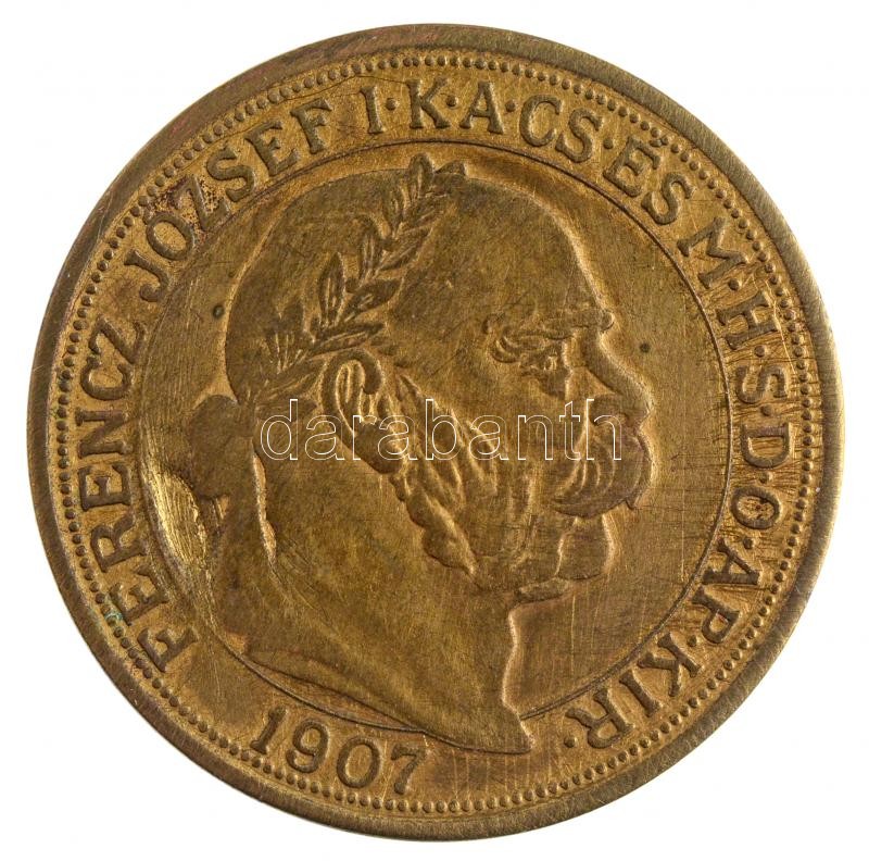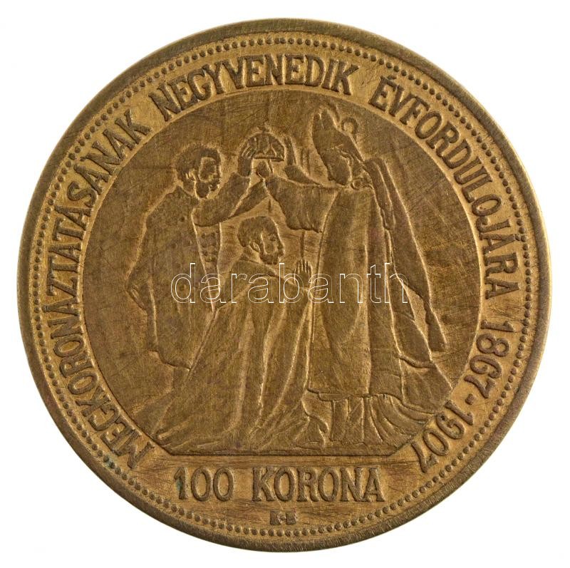 1907. 100K "Ferenc József Megkoronázásának Negyvenedik Évfordulójára" aranyozott fém utánveret dísztokban T:2-