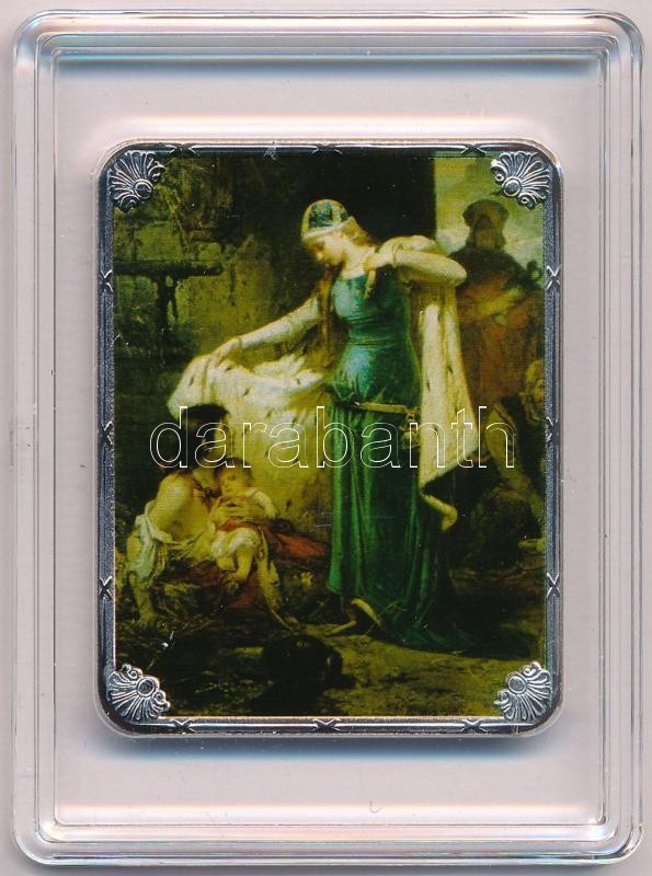 DN "A magyar festészet remekművei kollekció - Liezen-Mayer Sándor: Árpádházi Szent Erzsébet" ezüstözött rézötvözet emlékérem (36x46mm) T:PP kis patina