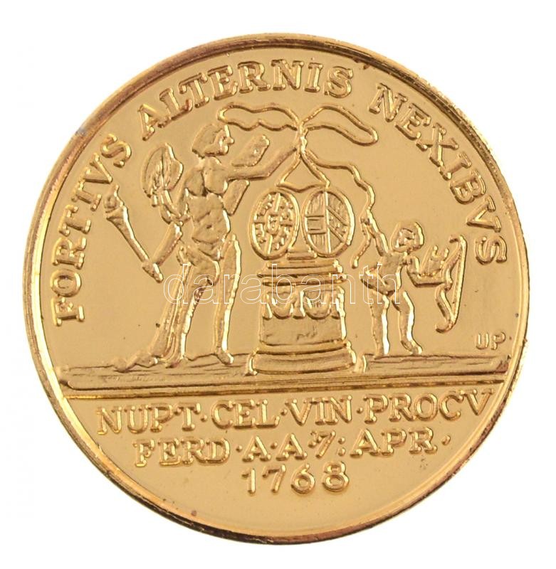 DN "Mária Karolina Lujza eljegyzésére készült 1768-as aranydukát" aranyozott Cu-Ni utánverete UP-jelzéssel, dísztokban, tanúsítvánnyal T:PP