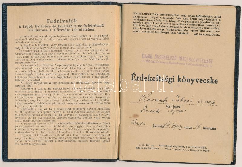 1948. Hitelszövetkezet érdekeltségi könyv használt de jó állapotban https://www.darabanth.com/de/392-Fernauktion/392.0/Numismatik/Numismatische-Dokumente-und-Briefe~2000003/1948-Hitelszovetkezet-erdekeltsegi-konyv-hasznalt-de-jo-allapotban~II2344938