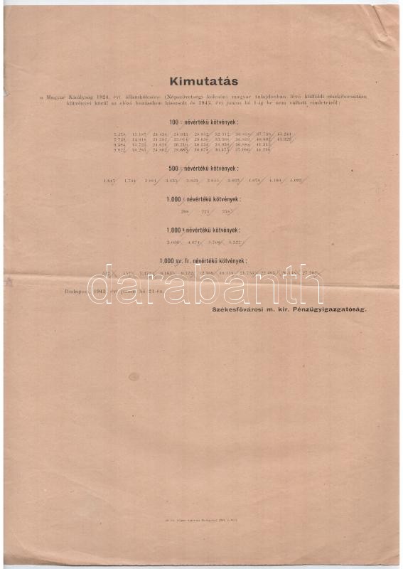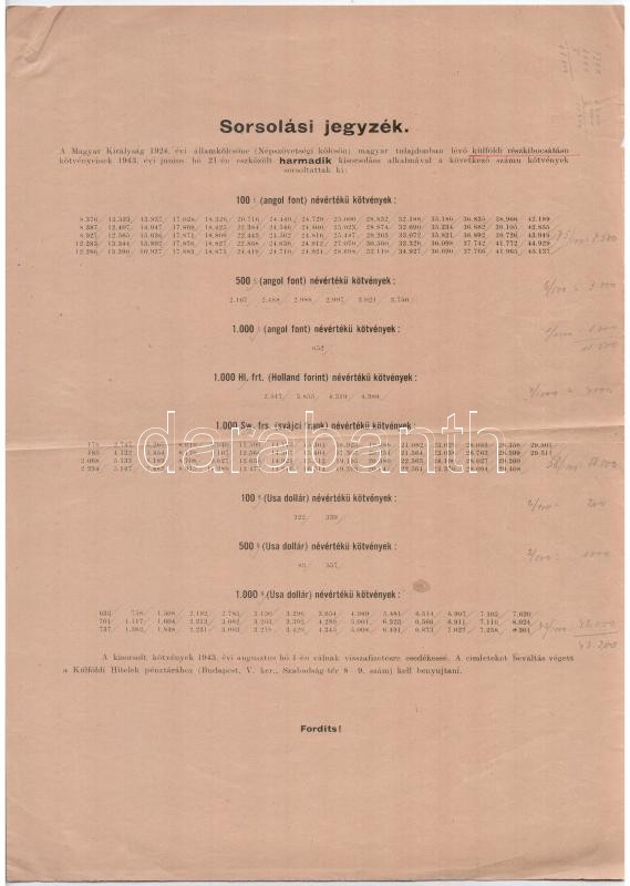 Budapest 1943. "Népszövetségi kölcsön" sorsolási jegyzék és ... https://www.darabanth.com/de/392-Fernauktion/392.0/Numismatik/Numismatische-Dokumente-und-Briefe~2000003/Budapest-1943-Nepszovetsegi-kolcson-sorsolasi-jegyzek-es-kimutatas-TII-III~II2325836