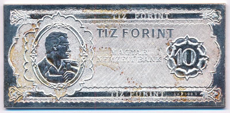 1996. "1946. 10Ft" jelzett Ag bankjegy veret (48,29g/0.999/... https://www.darabanth.com/de/392-Fernauktion/392.0/Numismatik/Ungarische-Gedenkmunzen-Plaketten~2000009/1996-1946-10Ft-jelzett-Ag-bankjegy-veret-48-29g099937-5x80mm-TPP-patina~II2369168