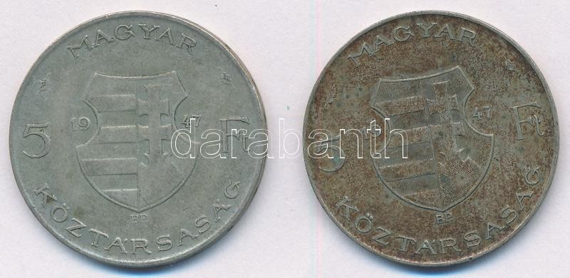 1947. 5Ft Ag "Kossuth" (2x) T:2-,3 patina Adamo F8.1 https://www.darabanth.com/de/392-Fernauktion/392.0/Numismatik/Ungarische-Munzen-und-Munzen-mit-ungarischem-Munzzeichen~2000008/1947-5Ft-Ag-Kossuth-2x-T2-3-patina-Adamo-F81~II2343738