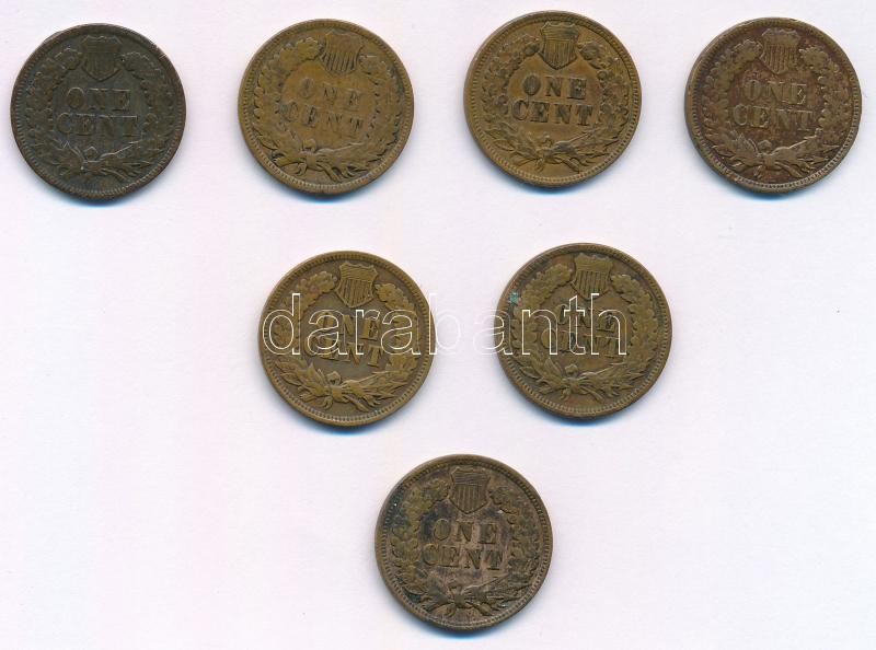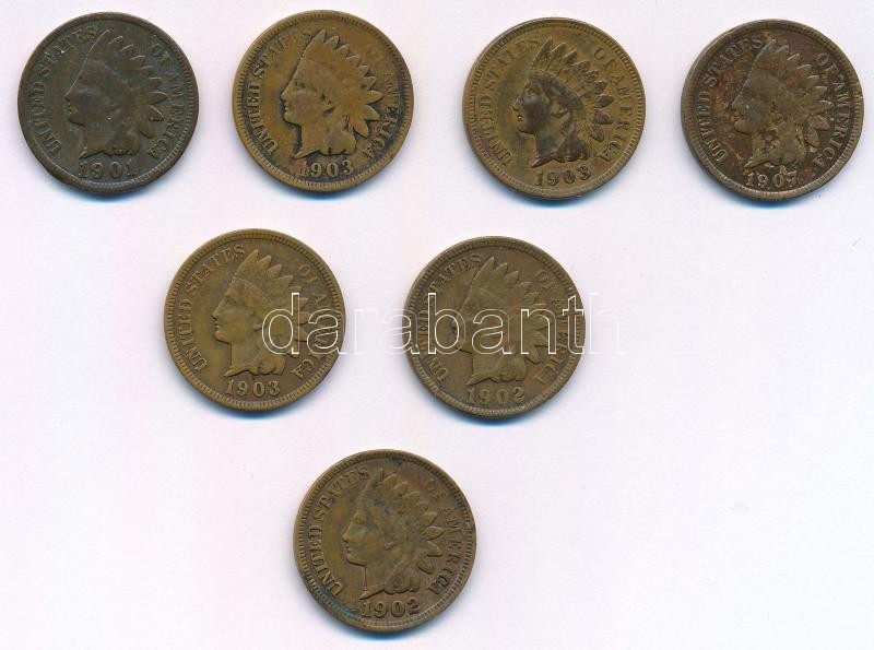 Amerikai Egyesült Államok 1901-1907. 1c Br "Indián fej" (7x) közte 4xklf évjárat T:2-3