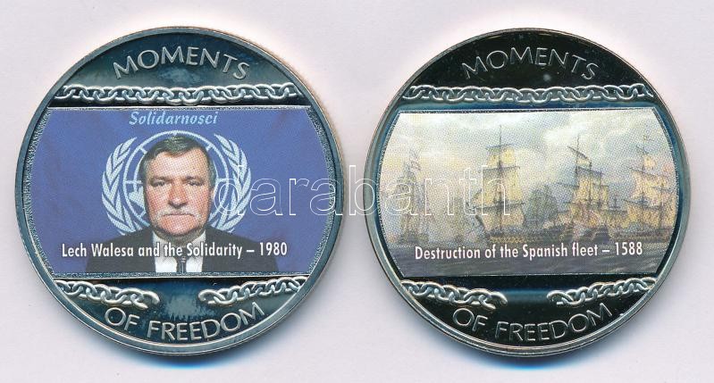 Liberia 2004. 10 Dollars "Moments of Freedom - Destruction of the Spanish Fleet 1588" multicolor + 10 Dollars "Moments of Freedom - Lech Walesa and the Solidarity 1980" multicolor C:PP spotted