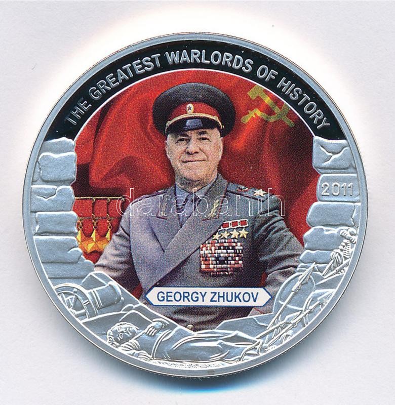 Libéria 2011. 5$ ezüstözött Cu "A történelem legnagyobb hadurai - Georgij Zsukov" részben multicolor festéssel T:PP Liberia 2011. 5 Dollars silver plated Cu "The Greatest Warlords of History - Georgy Zhukov" with partial multicolor picture C:PP