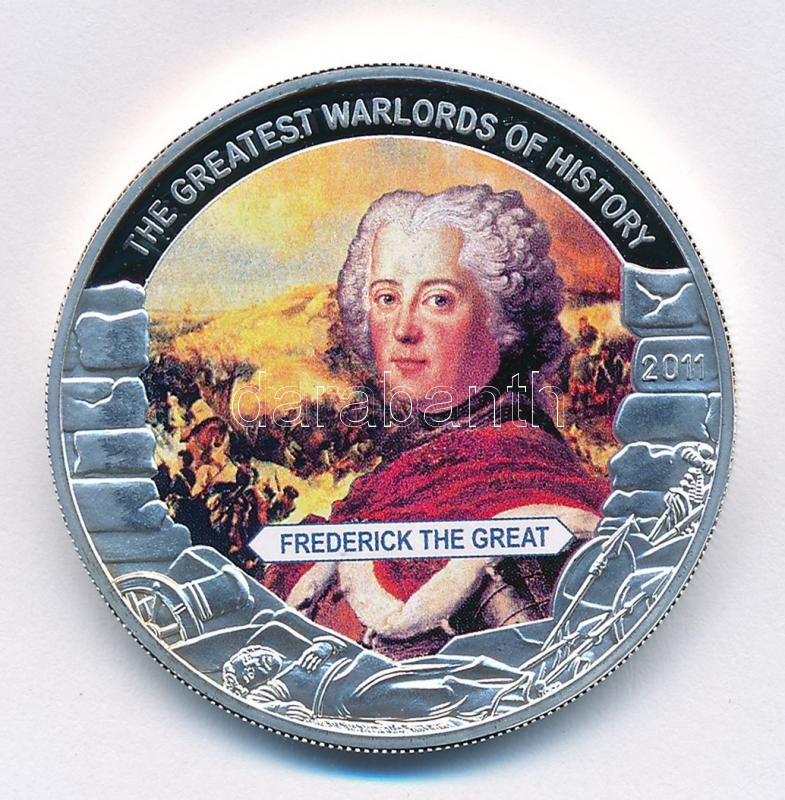 Libéria 2011. 5$ ezüstözött Cu "A történelem legnagyobb hadurai - Nagy Frigyes" részben multicolor festéssel T:PP Liberia 2011. 5 Dollars silver plated Cu "The Greatest Warlords of History - Frederick the Great" with partial multicolor picture C:PP