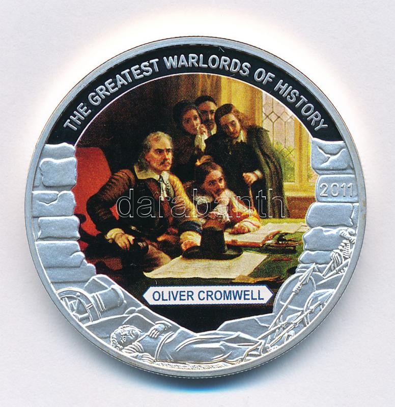 Libéria 2011. 5$ ezüstözött Cu "A történelem legnagyobb hadurai - Oliver Cromwell" részben multicolor festéssel T:PP Liberia 2011. 5 Dollars silver plated Cu "The Greatest Warlords of History - Oliver Cromwell" with partial multicolor picture C:PP