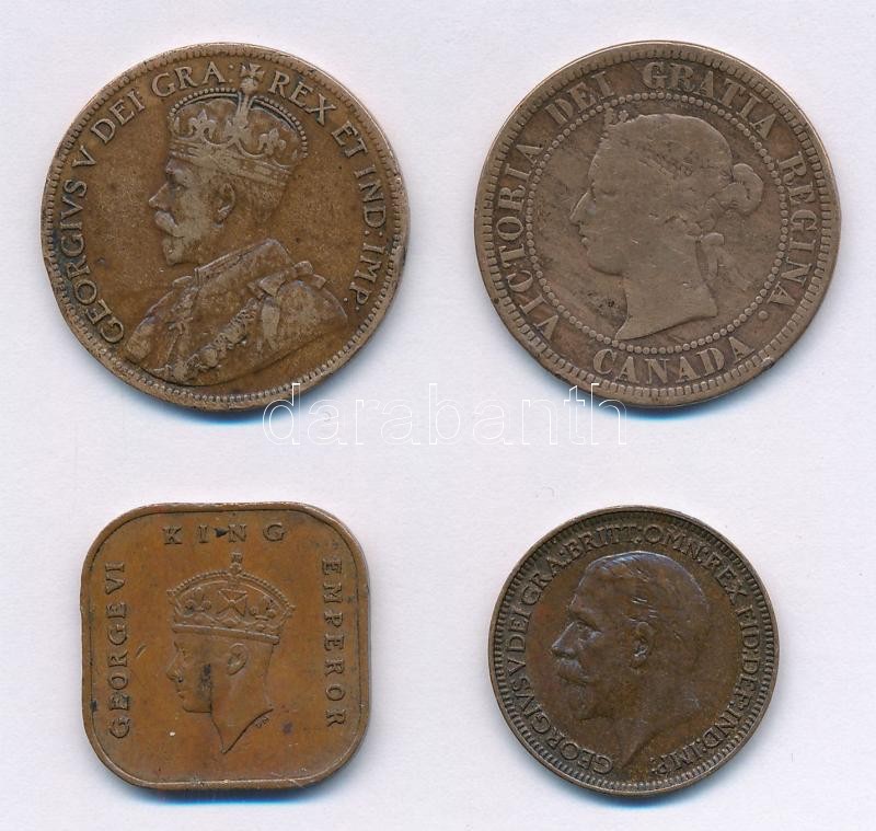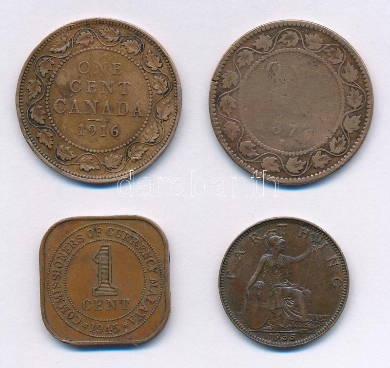 Nagy-Britannia 1936. Farthing Br "V. György" + Kanada 1876. 1c Br "Viktória" + 1916. 1c Br "V. György" + Malaya 1945. 1c Br "VI. György" T:1--3 United Kingdom 1936. Farthing Br "George V" + Canada 1876. 1 Cent Br "Victoria" + 1916. 1 Cent Br "George V" + Malaya 1945. 1 Cent Br "George VI" C:AU-F