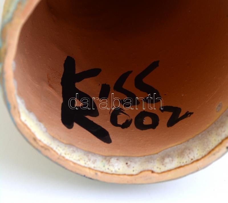 Beschreibung: Kiss Roóz Ilona (1920-2010): Lány virággal, Mázas kerámia, kézzel festett, jelzett, hibátlan, m: 18 cm