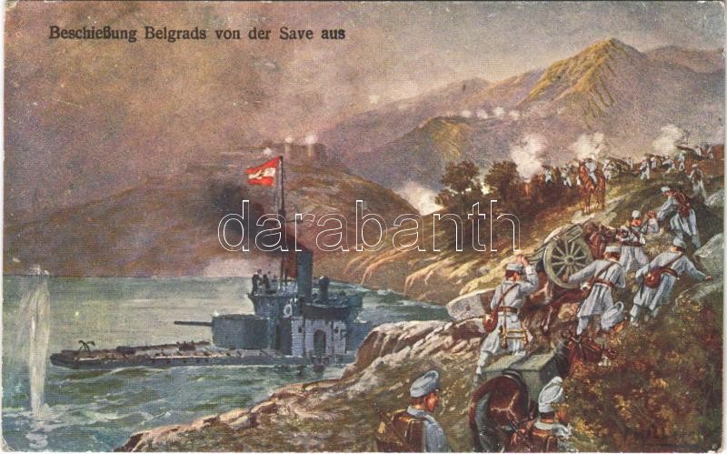 1916 Belgrád ostroma a Száváról / Beschießung Belgrads von der Save aus / WWI Austro-Hungarian Navy, K.u.K. Kriegsmarine, Bombardment of Belgrade from the Sava s: F. Höllerer