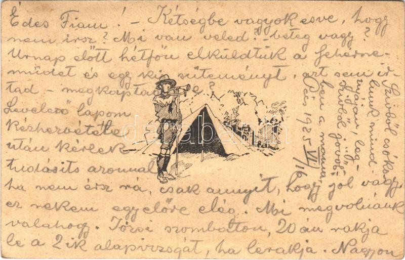 1925 Cserkésztábor, trombitáló cserkész. Kiadja a 40. sz. "Szekszárdi ... https://www.darabanth.com/de/393-Fernauktion/393.0/Ansichtskarten/Pfadfinder~1500063/1925-Cserkesztabor-trombitalo-cserkesz-Kiadja-a-40-sz-Szekszardi-Cserkeszek-csapata-H~II2377721