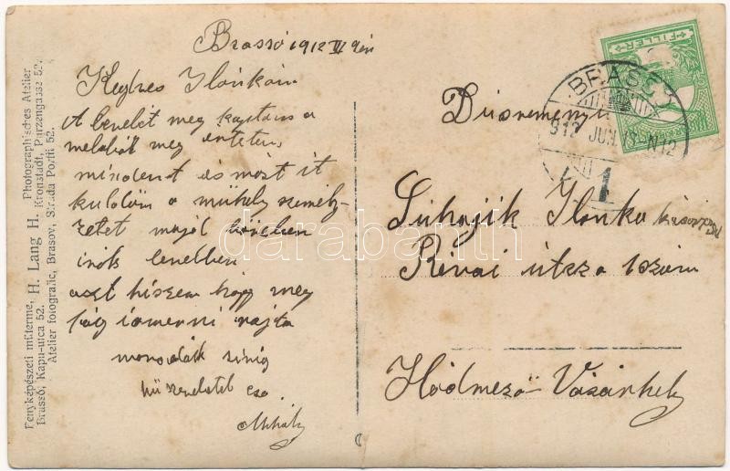 1912 Brassó, Kronstadt, Brasov; Kardos és Kálmán budapesti bőrnagykereskedők Erdélyrészi fióktelepe, üzlet bejárata / leather shop. Lang H. photo (szakadás / tear)