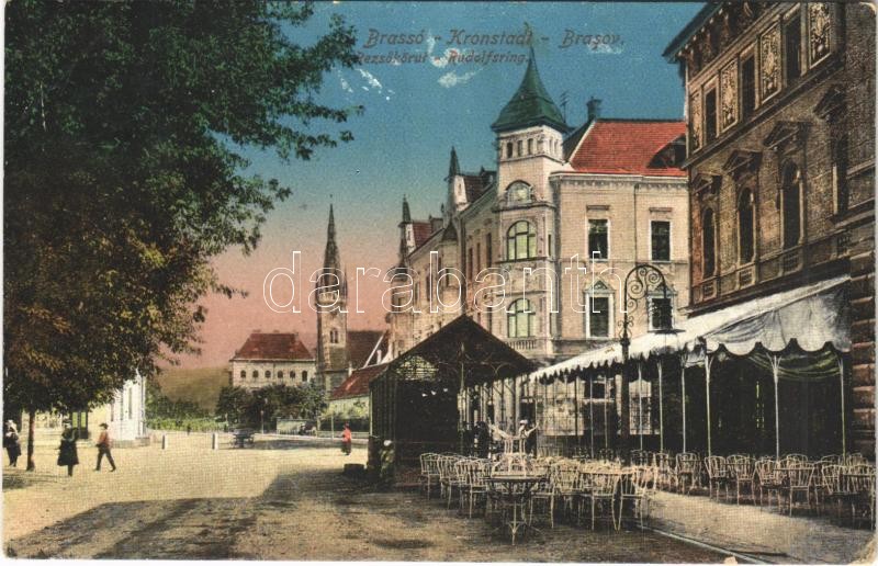 1914 Brassó, Kronstadt, Brasov; Rezső körút, étterem terasza / Rudolfs... https://www.darabanth.com/de/393-Fernauktion/393.0/Ansichtskarten/Siebenburgen~1500006/1914-Brasso-Kronstadt-Brasov-Rezso-korut-etterem-terasza-Rudolfsring-street-restaurant~II2380713