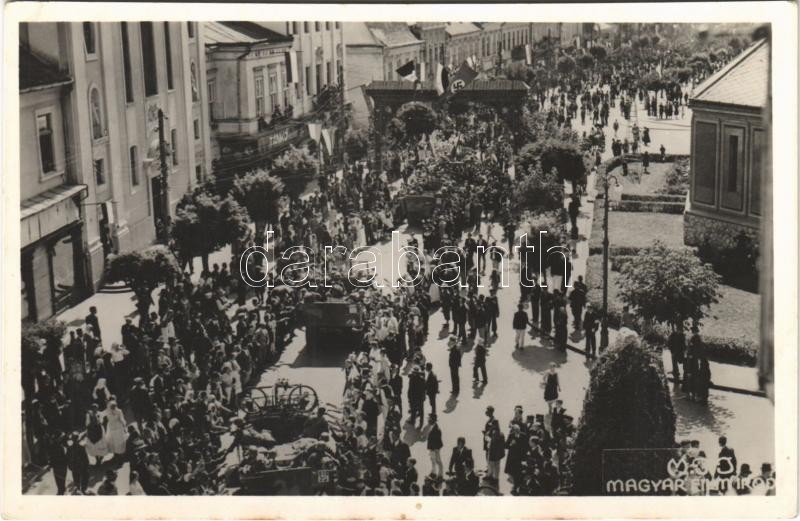 1940 Marosvásárhely, Targu Mures; bevonulás, magyar és horogkeresztes ... https://www.darabanth.com/de/393-Fernauktion/393.0/Ansichtskarten/Siebenburgen~1500006/1940-Marosvasarhely-Targu-Mures-bevonulas-magyar-es-horogkeresztes-zaszlok-entry-of-the-H~II2381797