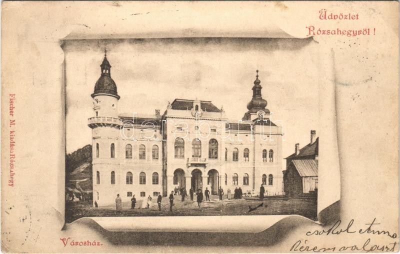 Beschreibung: 1901 Rózsahegy, Ruzomberok; városház. Fischer M. kiadása / town hall + "RÓZSAHEGY P.U." (EK)