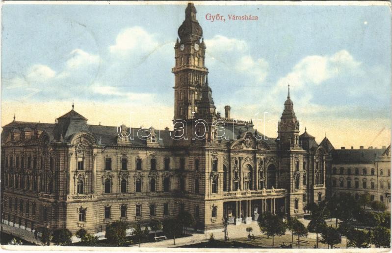 1914 Győr, Városháza. Polgár Bertalan kiadása (EK) https://www.darabanth.com/de/393-Fernauktion/393.0/Ansichtskarten/Ungarn~1500005/1914-Gyor-Varoshaza-Polgar-Bertalan-kiadasa-EK~II2377578