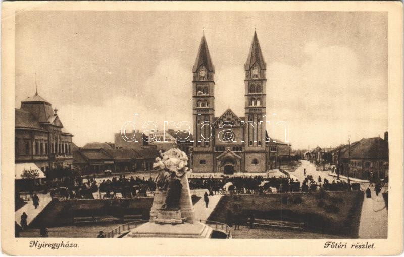 Beschreibung: 1925 Nyíregyháza, Fő tér, templom, bútorraktár (EK)
