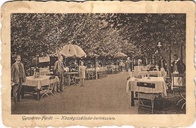 Beschreibung: Gyopáros (Orosháza), Községi szálloda, étterem, kert pincérekkel. Tomai kiadása (ázott / wet damage)