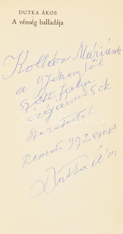 Dutka Ákos: A vénség balladája. DEDIKÁLT! Bp., 1965, Magvető Kiadó. Ki... https://www.darabanth.com/de/393-Fernauktion/393.0/Bucher/Bucher-Andere-kuriositaten~1000027/Dutka-Akos-A-venseg-balladaja-DEDIKALT-Bp-1965-Magveto-Kiado-Kiadoi-egeszvaszon-ko~II2384220