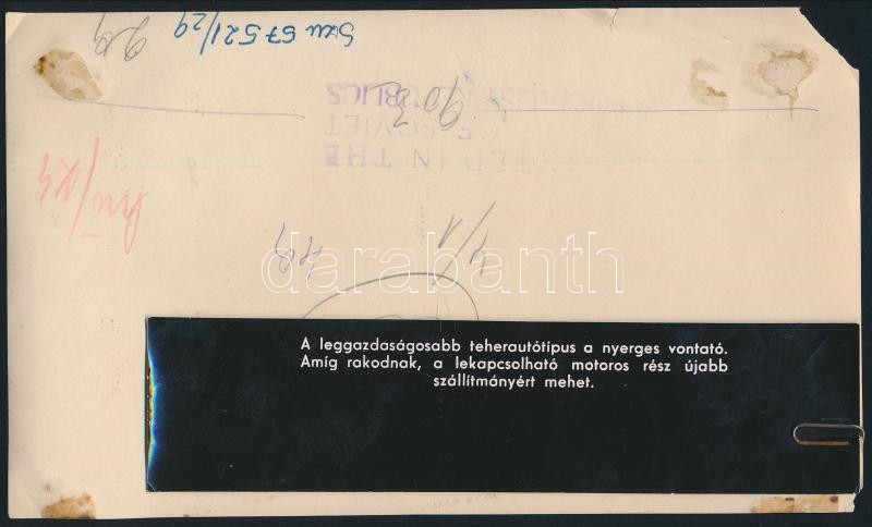 Nyerges vontató, fotó külön felirattal, sarka hiányos, felületén törés... https://www.darabanth.com/de/393-Fernauktion/393.0/Fotografie/Foto~500021/Nyerges-vontato-foto-kulon-felirattal-sarka-hianyos-feluleten-toresnyom-13C39722-cm~II2379689