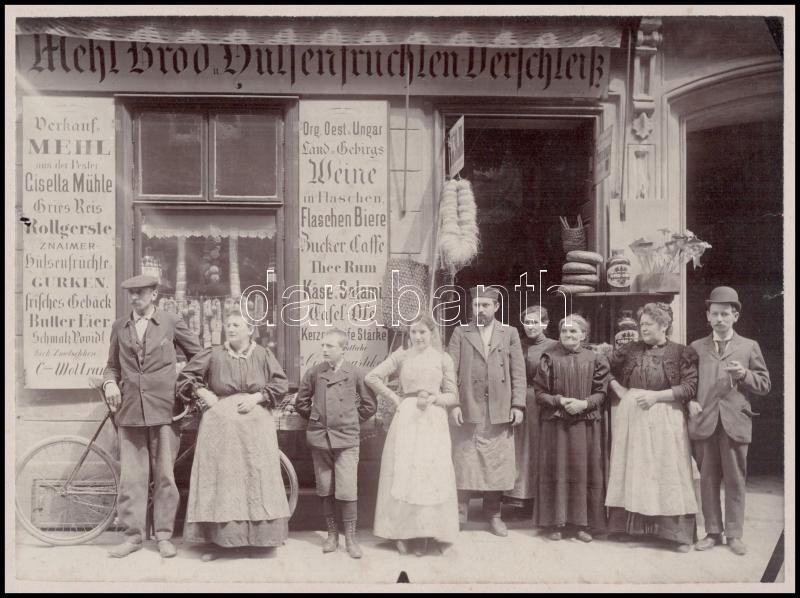 cca. 1900, Bécs, 5. kerület, Rüdigergasse, csemegebolt és személyzete,... https://www.darabanth.com/de/393-Fernauktion/393.0/Fotografie/Foto~500021/cca-1900-Becs-5-kerulet-Rudigergasse-csemegebolt-es-szemelyzete-foto-kartonra-kasirozv~II2382205