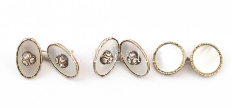 Beschreibung: Jelzett, ezüst gombok gyöngyház berakással. 3 pár. Br 9,57 g