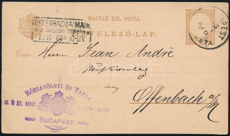 1885 Rózsavölgyi és Társa pecsétjével ellátott levelezőlap https://www.darabanth.com/de/393-Fernauktion/393.0/Kunst-Dokumente-andere-Sammelgebiete/Dokument~500034/1885-Rozsavolgyi-es-Tarsa-pecsetjevel-ellatott-levelezolap~II2378277