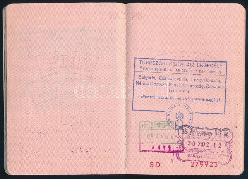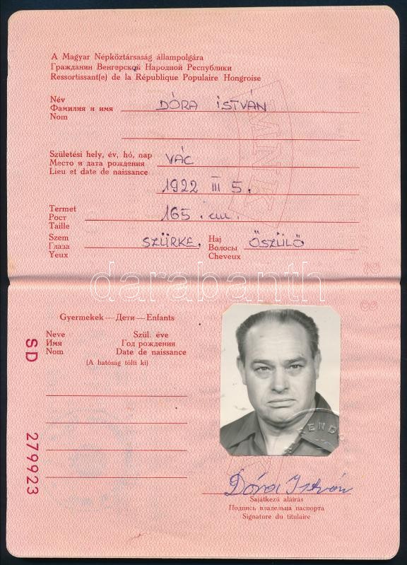 1974 Magyar Népköztársaság által kiállított fényképes útlevél sok pecs... https://www.darabanth.com/de/393-Fernauktion/393.0/Kunst-Dokumente-andere-Sammelgebiete/Dokument~500034/1974-Magyar-Nepkoztarsasag-altal-kiallitott-fenykepes-utlevel-sok-pecsettel-Hungarian-~II2381793