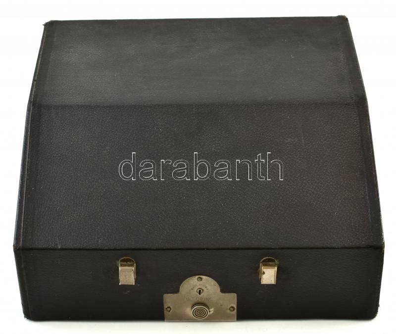 cca 1915 Underwood amerikai hordozható írógép, kissé kopott állapotban, magyar billentyűzettel, eredeti, kicsit viseltes tokkal, 31x30x13,5 cm / Underwood US typewriter with Hungarian keyboard, with some minor wear, in original case, 31x30x13,5 cm