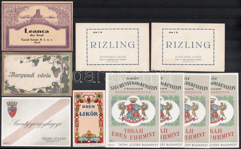 Beschreibung: 10 db régi italcímke, többségében boros, közte 4 db Széchenyi-Wolkenstein tokaji furmint