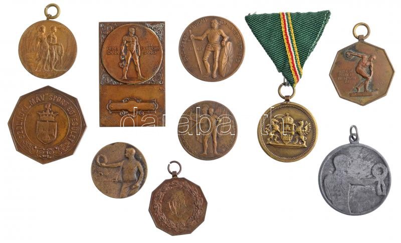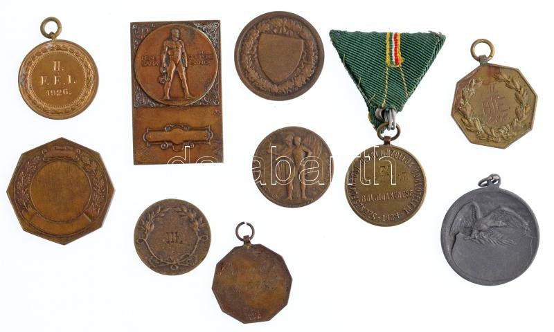 10db-os vegyes sportérem- és plakett tétel, közte Berán Lajos (1882-1943) ~1920. "Mens sana in corpore sano (Ép testben ép lélek)" Br plakett (33x53mm) T:vegyes
