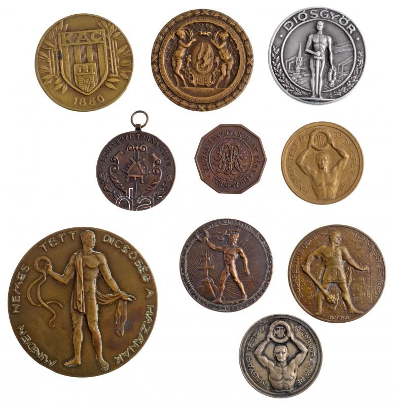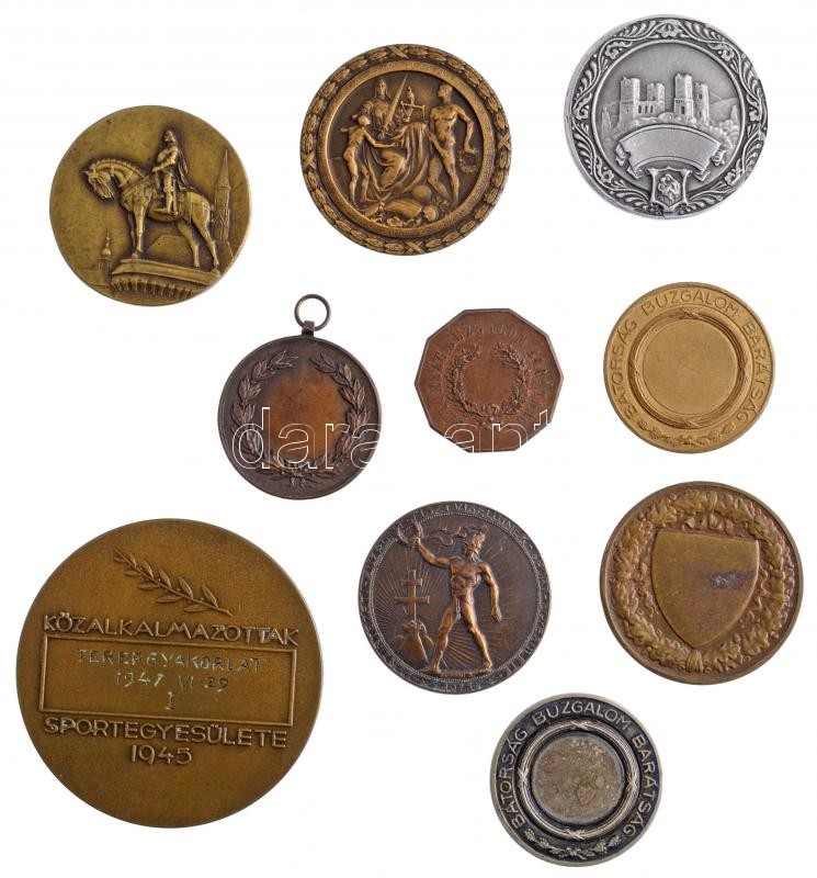 10db-os vegyes sportéremtétel, közte Reményi József (1887-1977) 1947. "Minden nemes tett dicsőség a hazának / Közalkalmazottak Sport Egyesülete 1945" kétoldalas Br emlékérem (60mm) T.:vegyes