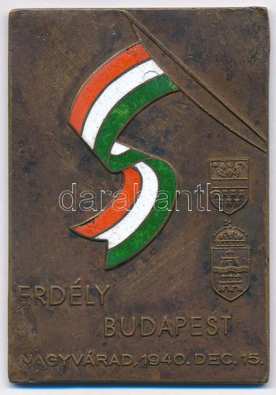 1940. "Erdély - Budapest - 1940. dec. 15." részben zománcozott Br plak... https://www.darabanth.com/de/393-Fernauktion/393.0/Numismatik/Sportpreise-und-Sportgedenkmedaillen~2000011/1940-Erdely-Budapest-1940-dec-15-reszben-zomancozott-Br-plakett-46x66mm-T2-zomanchi~II2380853