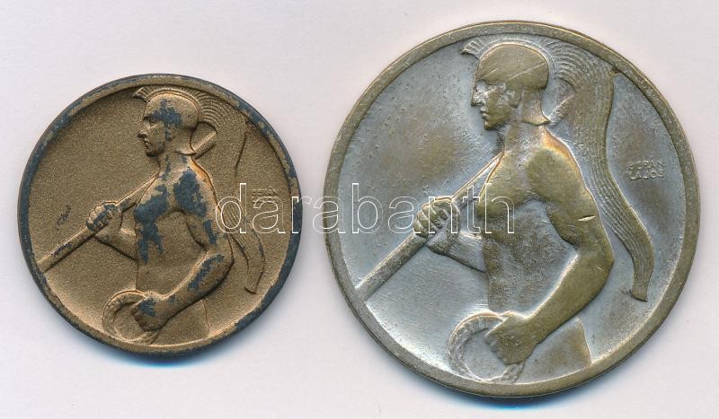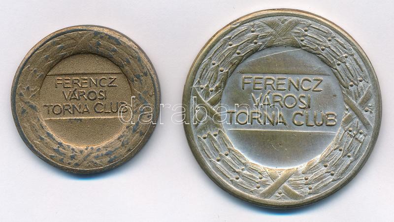 Berán Lajos (1882-1943) ~1920. "Ferenczvárosi Torna Club" bronzozott fém emlékérem (30mm) + ~1920. "Ferenczvárosi Torna Club" ezüstözött Br emlékérem (40mm) T:2,2- kopott ezüstözés, bronzozás
