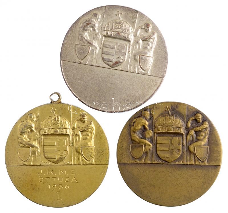Beschreibung: Sződy Szilárd (1878-1939) 1936-1946. 3xklf, aranyozott Br, ezüstözött Br és Br sportérem, egyik füllel (46mm) T:2