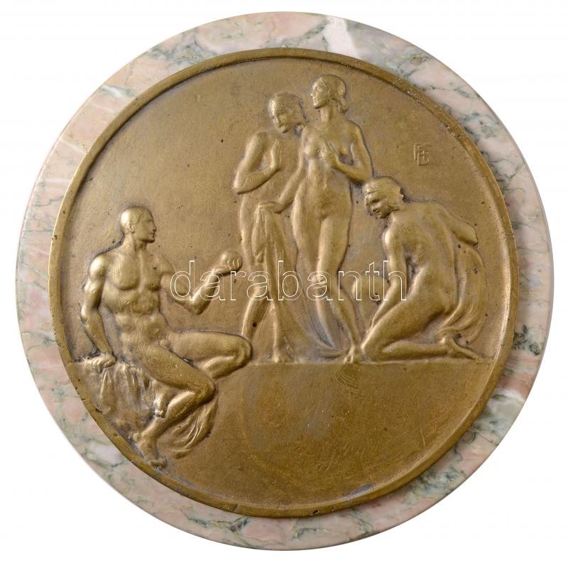 Beschreibung: DN Párisz ítéletét ábrázoló allegorikus, egyoldalas, öntött Br plakett márványlapon. Szign.: PFB (plakett: 246mm / márvány: 284mm) T:2