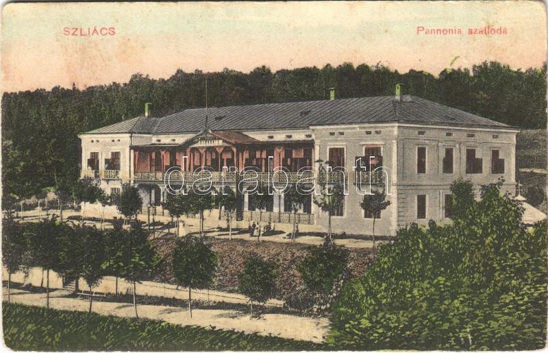 1910 Szliács, Sliac; Pannonia szálloda / hotel (EK) https://www.darabanth.com/de/394-Fernauktion/394.0/Ansichtskarten/Slowakei~1500007/1910-Szliacs-Sliac-Pannonia-szalloda-hotel-EK~II2392130