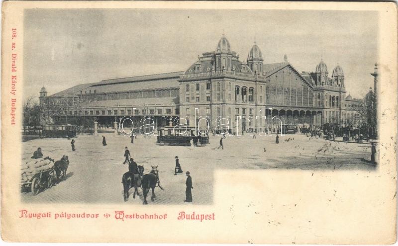 1899 (Vorläufer) Budapest VI. Nyugati pályaudvar, villamosok, lovaskoc... https://www.darabanth.com/de/394-Fernauktion/394.0/Ansichtskarten/Ungarn~1500005/1899-Vorlaufer-Budapest-VI-Nyugati-palyaudvar-villamosok-lovaskocsik-Divald-Karoly-108-EK~II2391757