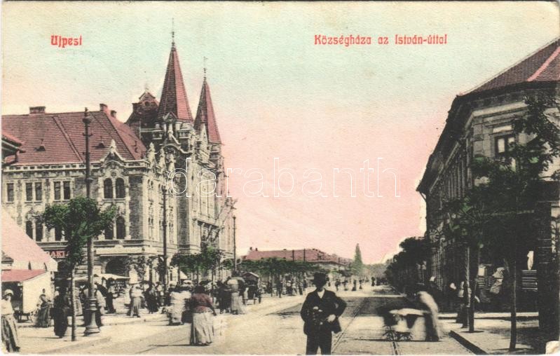 1908 Budapest IV. Újpest, Községháza, István út, üzletek. Selley Károl... https://www.darabanth.com/de/394-Fernauktion/394.0/Ansichtskarten/Ungarn~1500005/1908-Budapest-IV-Ujpest-Kozseghaza-Istvan-ut-uzletek-Selley-Karoly-kiadasa-EK~II2391159