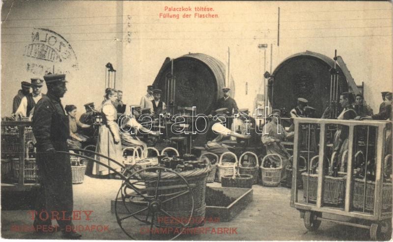 1909 Budapest XXII. Budafok, Törley Pezsgőborgyár belső, palackok tölt... https://www.darabanth.com/de/394-Fernauktion/394.0/Ansichtskarten/Ungarn~1500005/1909-Budapest-XXII-Budafok-Torley-Pezsgoborgyar-belso-palackok-toltese-EK~II2386738