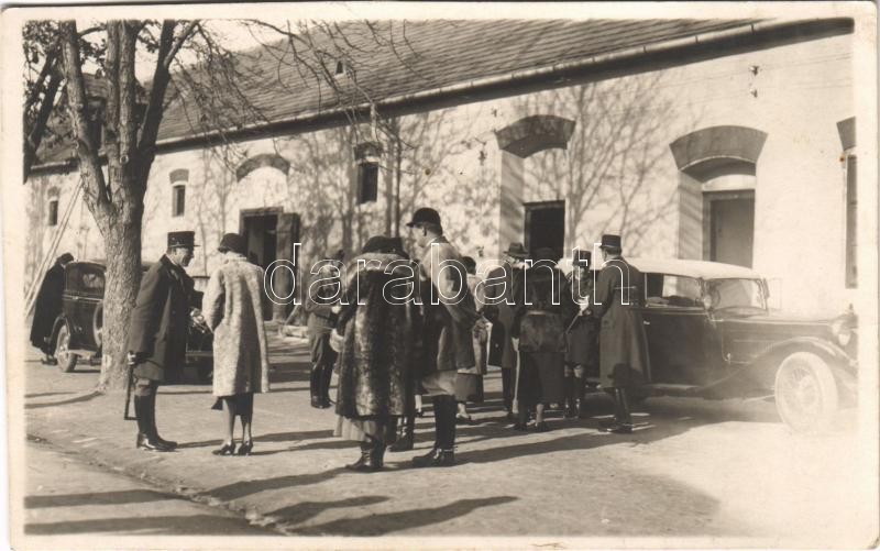 Beschreibung: Keszthely, katonatisztek és hölgyek automobilokkal. Tímár Rózsika fényképészeti műterme, photo
