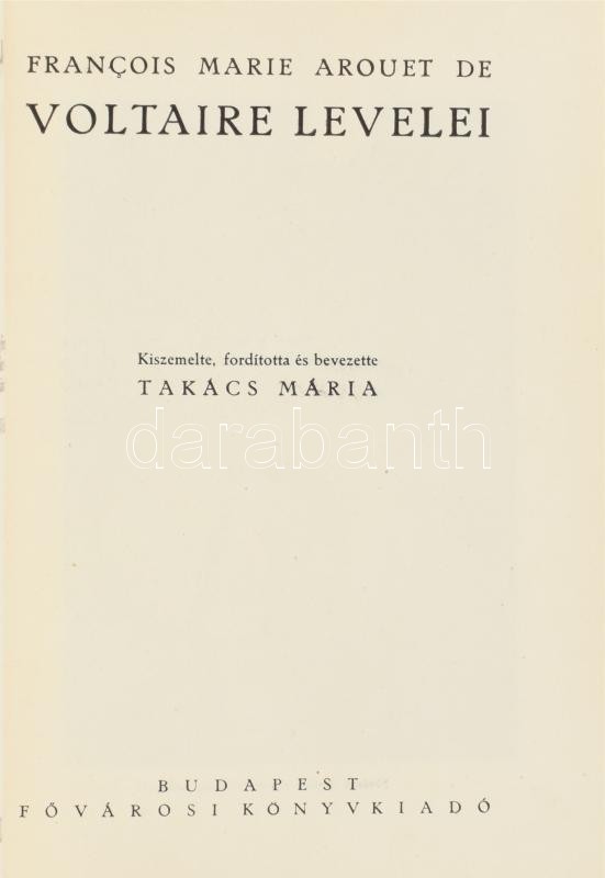 Francois Marie Arouet de Voltaire levelei. Kiszemelte, ford. és beveze... https://www.darabanth.com/de/394-Fernauktion/394.0/Bucher/Bucher-Andere-kuriositaten~1000018/Francois-Marie-Arouet-de-Voltaire-levelei-Kiszemelte-ford-es-bevezette-Takacs-Maria-Document~II2385296