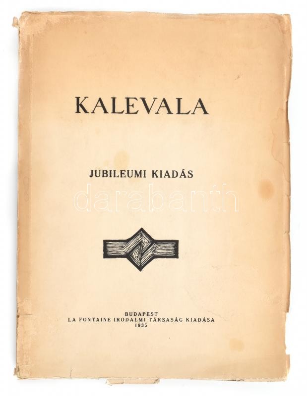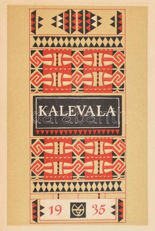 Kalevala, a finnek nemzeti hőskölteménye. A finn eredetiből fordította és a summázó versikéket írta: Vikár Béla. Akseli Gallen-Kallela képeivel illusztrált. Bp., 1935., La Fontaine Irodalmi Társaság (Vác, Kapisztán-ny.), 8+333 p. Második, jubileimi kiadás. Kiadó papírkötés, kissé szakadt borítóval, javított kötéssel, intézményi bélyegzővel.