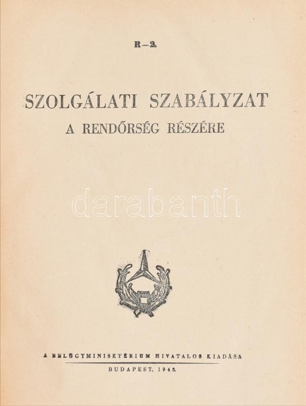 Szolgálati szabályzat a rendőrség részére. Bp., 1948. BM. Korabeli, ar... https://www.darabanth.com/de/394-Fernauktion/394.0/Bucher/Bucher-Militaria~1000006/Szolgalati-szabalyzat-a-rendorseg-reszere-Bp-1948-BM-Korabeli-aranyozott-egeszvaszon-k~II2394793