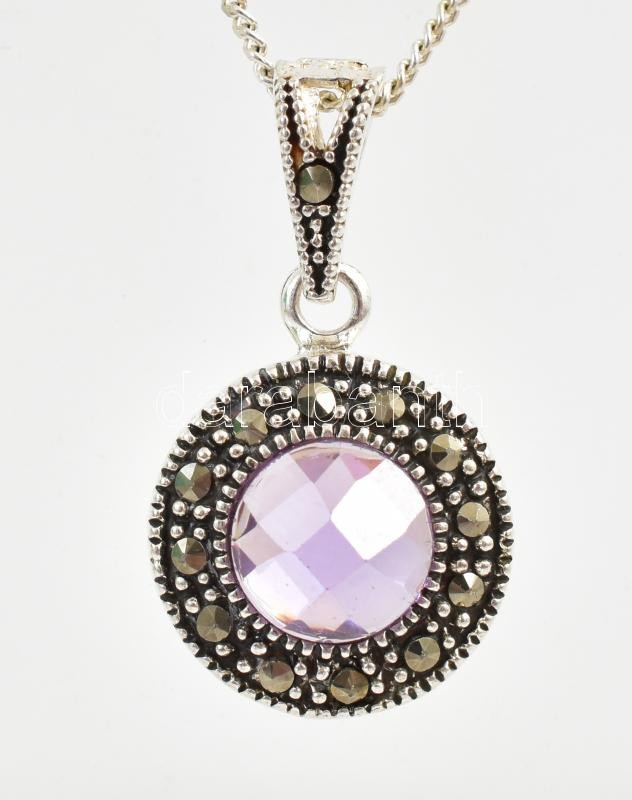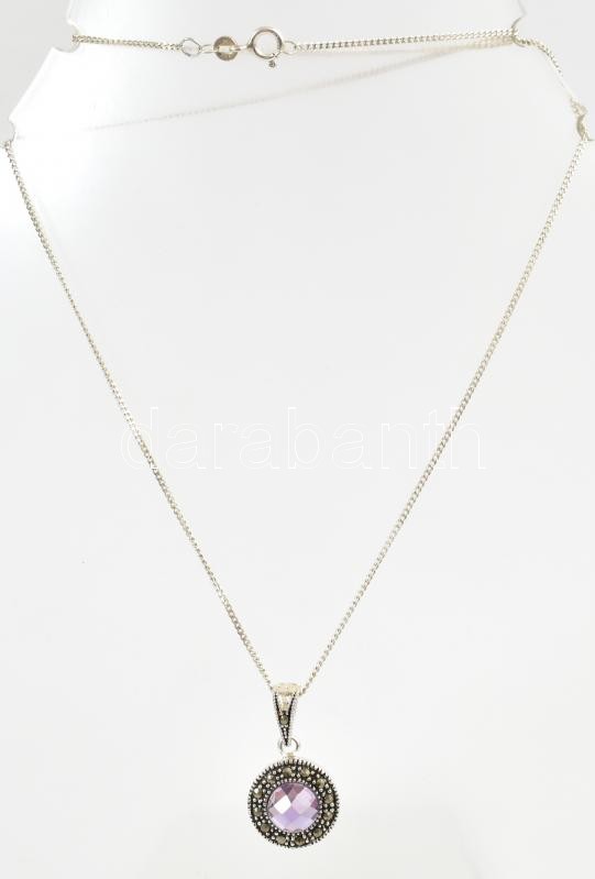 Beschreibung: Ezüst(Ag) nyaklánc, lila köves medállal, jelzett, h: 44 cm, bruttó: 5,36 g