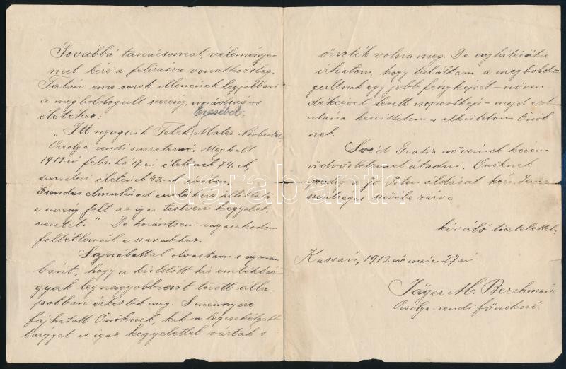 1913 Kassa, Orsolya-rendi főnöknő saját kézzel írt levele, szakadással https://www.darabanth.com/de/394-Fernauktion/394.0/Kunst-Dokumente-andere-Sammelgebiete/Dokument~500019/1913-Kassa-Orsolya-rendi-fonokno-sajat-kezzel-irt-levele-szakadassal~II2390436