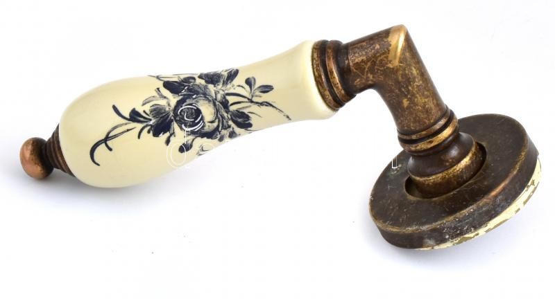 Beschreibung: Virágmintás kilincs, réz és kerámia elemekből, kis kopásnyommal, h: 13 cm